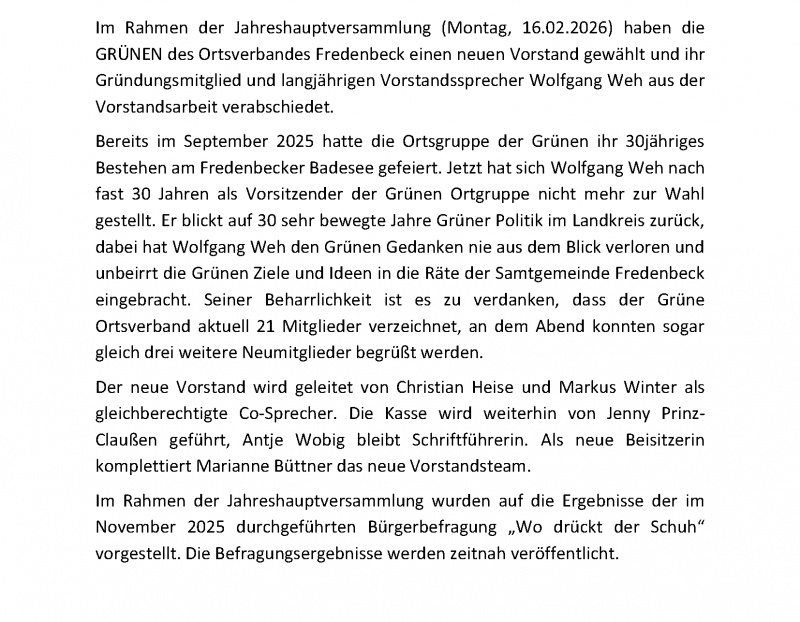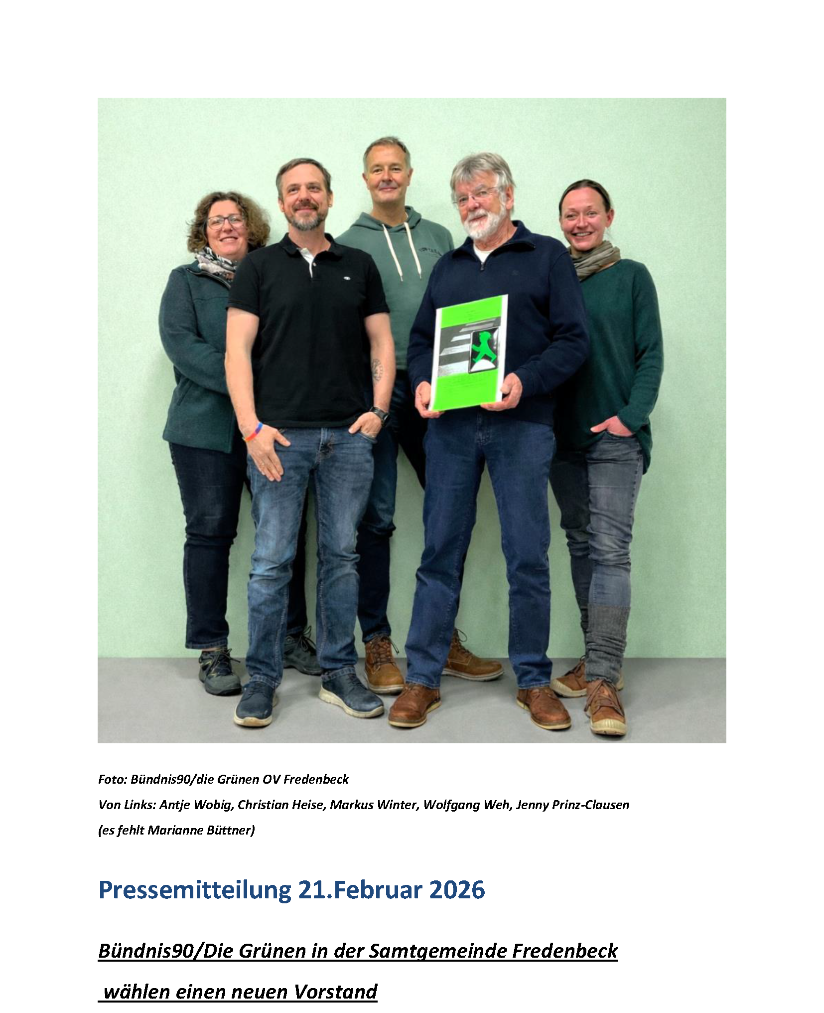 Bündnis90/Die Grünen in der Samtgemeinde Fredenbeck wählen einen neuen Vorstand